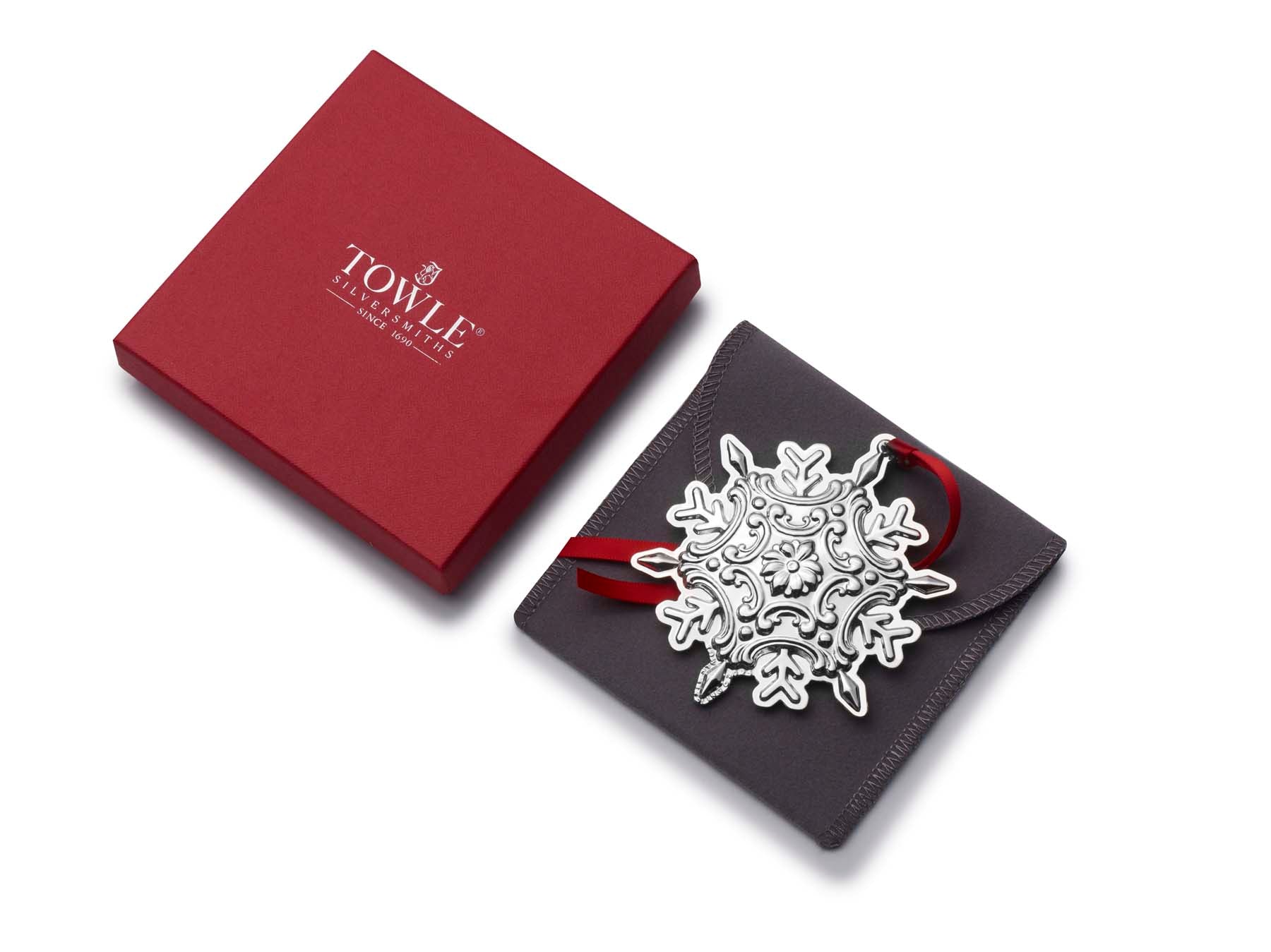 Celebrate the magic of winter with Towle’s 36th Edition Sterling Silver Snowflake Ornament. Handcrafted in the USA by master silversmiths. this limited-edition ornament features an intricate snowflake design that captures the delicate beauty of nature. This ornament exudes timeless elegance and serves as a treasured keepsake for generations to come. Whether adorning your Christmas tree. displayed as a seasonal décor piece. or gifted to a loved one. this exquisite ornament is a symbol of joy. wonder. and winter’s beauty.