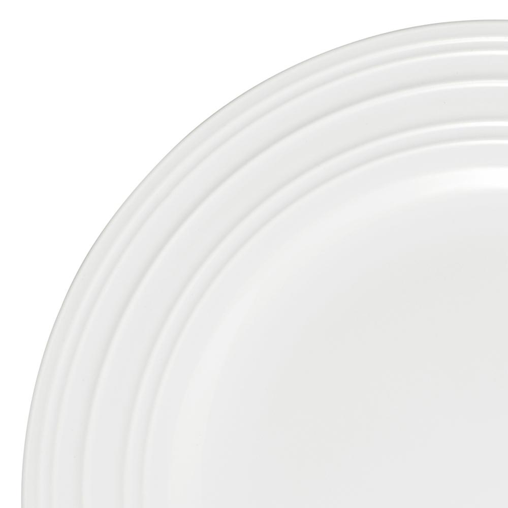 Ciara dinnerware features embossed whimsical swirling lines on a crisp white translucent body creating a striking statement. Lightweight. Chip Resistant and Durable for everyday use.??