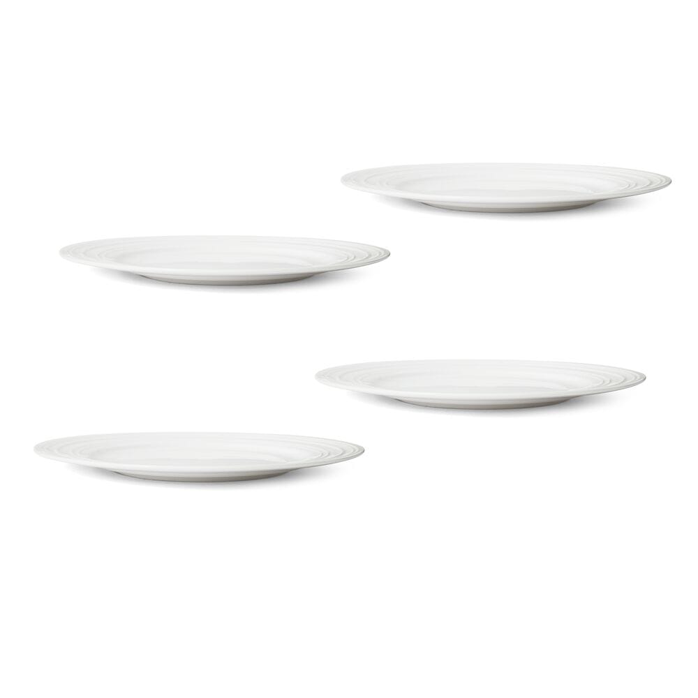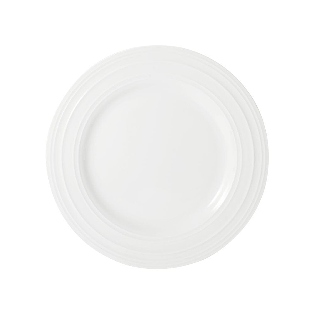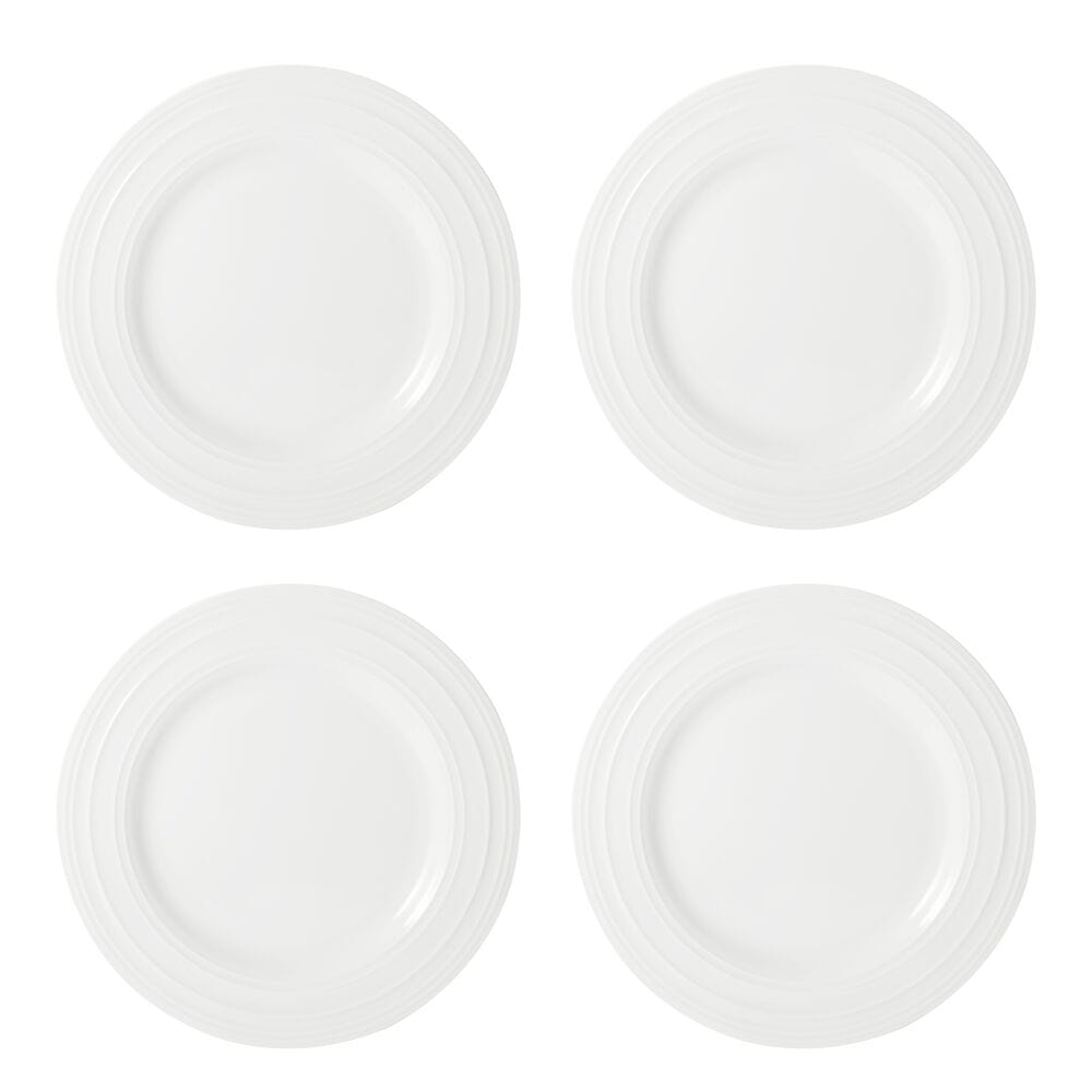 This Set of 4 Ciara Salad Plates is made of crisp white bone china to create a neutral backdrop that highlights your flatware and drinkware while bringing contemporary style to the table. The rim design adds a distinctly modern touch to your place settings. and features an embossed. swirling line design. Plates are ideal for serving pasta or salads.