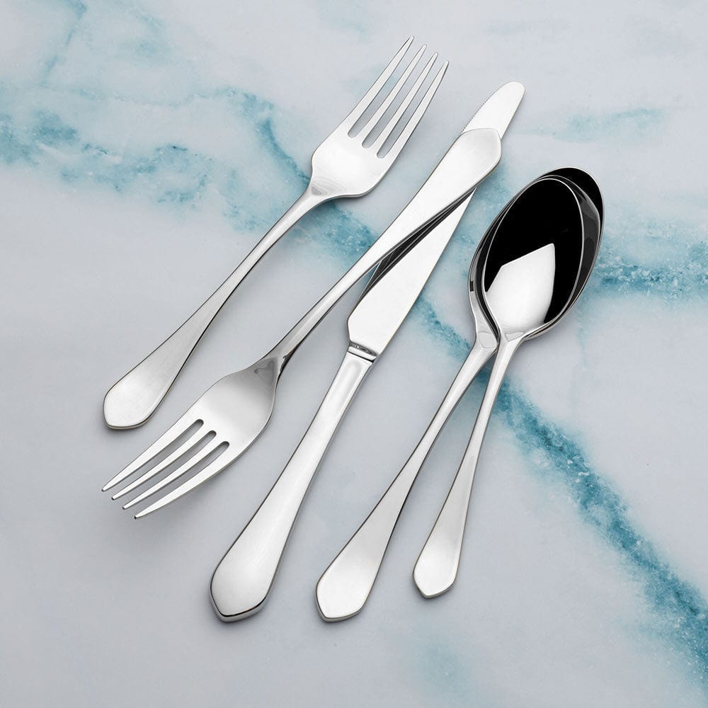 This Colson Flatware Set features classic teardrop handles that are given a modern twist with a gently curved point at the tip and a lustrous mirror finish. The timeless style adds a touch of sophistication to your dining table.