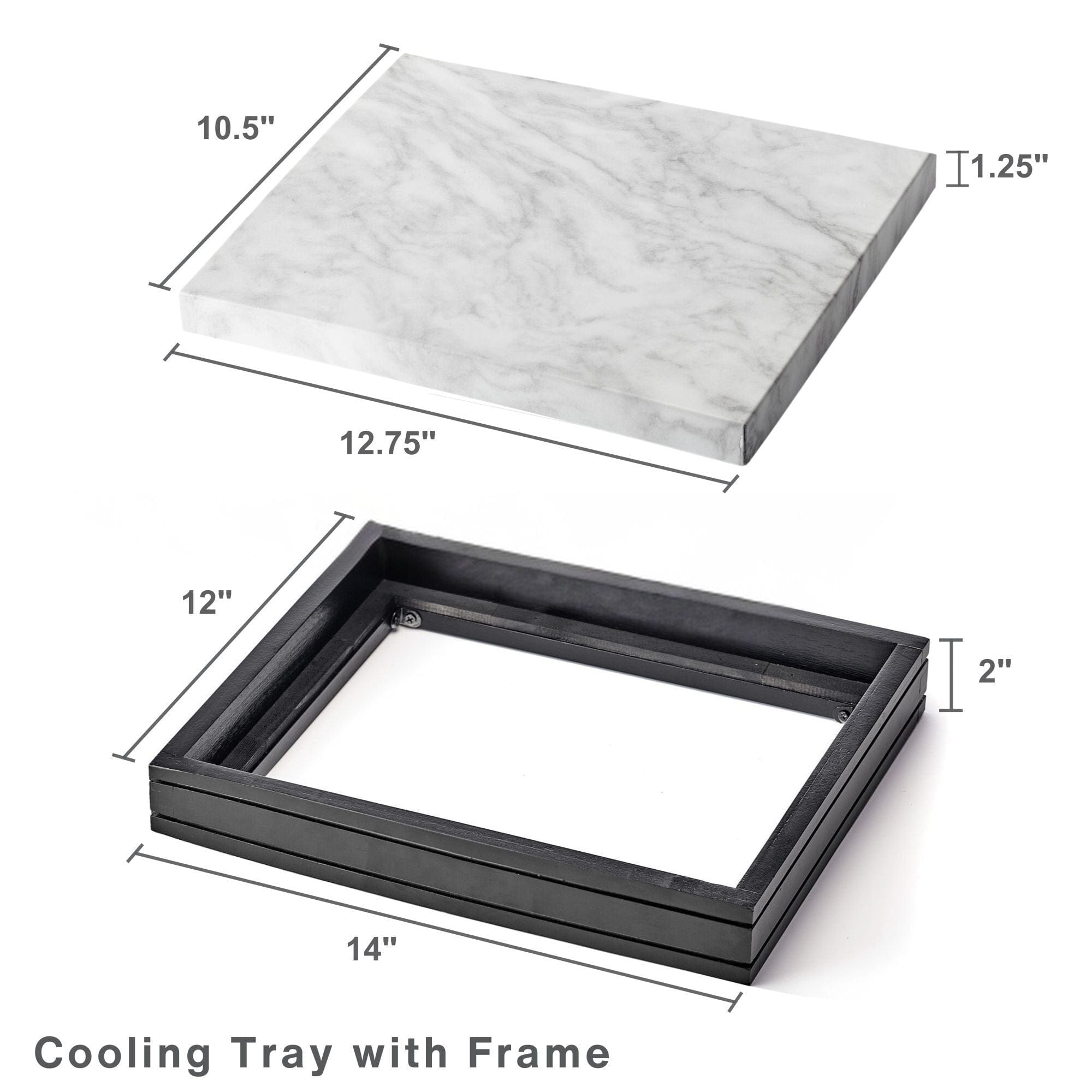 This Gourmet Basics Cooling Tray with Frame is an essential hosting item for serving cold foods like shrimp. vegetables. dips. appetizers. and more. The cooling tray has a striking marble design. making it perfect for serving in style. and sits in a beautiful. sturdy wood-framed base to elevate the cooling tray off surfaces.