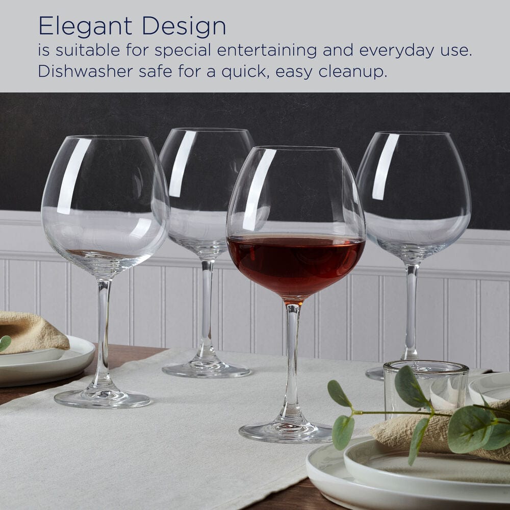 These Lana Set of 4 Red Wine Balloon Glasses elevates any occasion. The traditional silhouette features a rounded bowl and thin stem. and the crisp clear body complements any flatware and dinnerware.