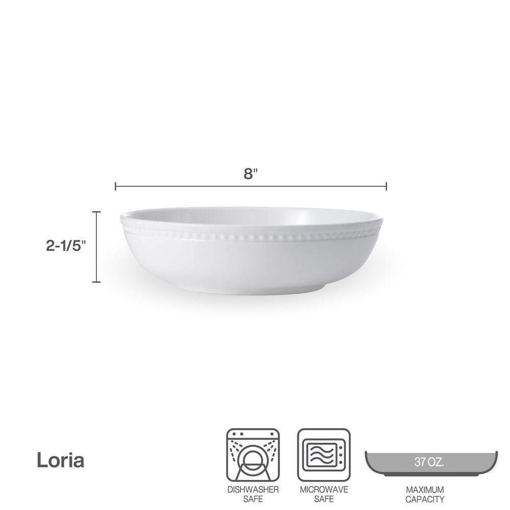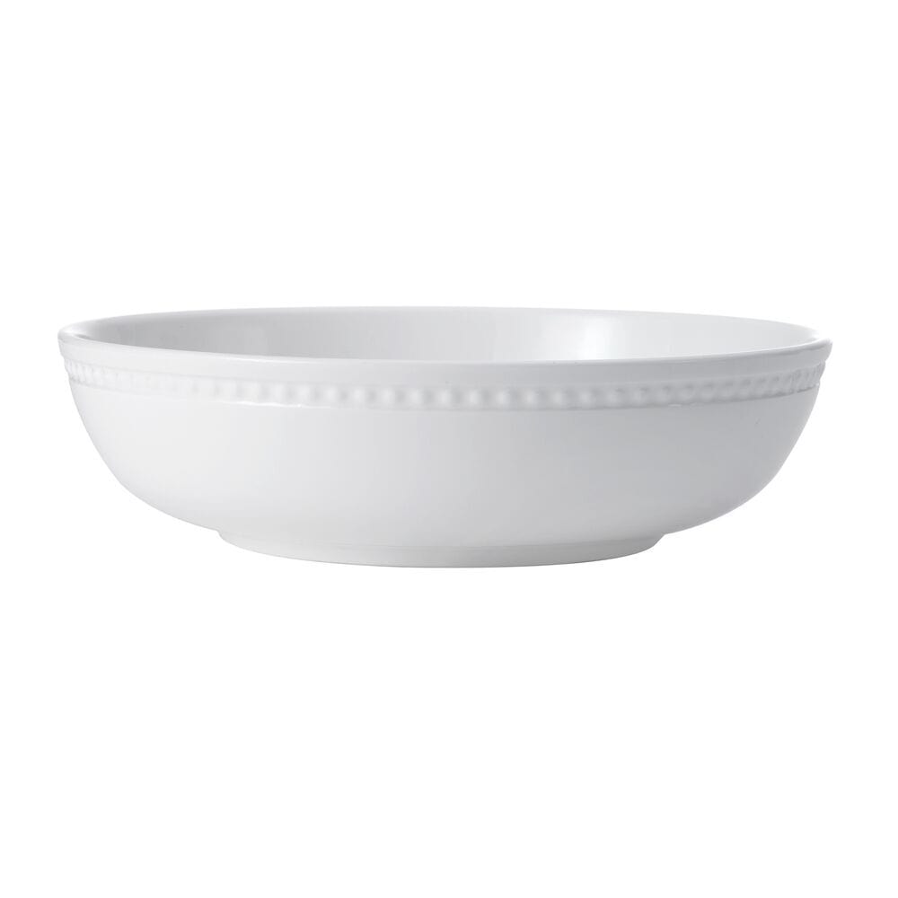 This Loria Set of 4 Pasta Bowls feature a low. wide design. in crisp white with a simplistic embossed bead design. and is perfect for introducing a touch of style to your table.