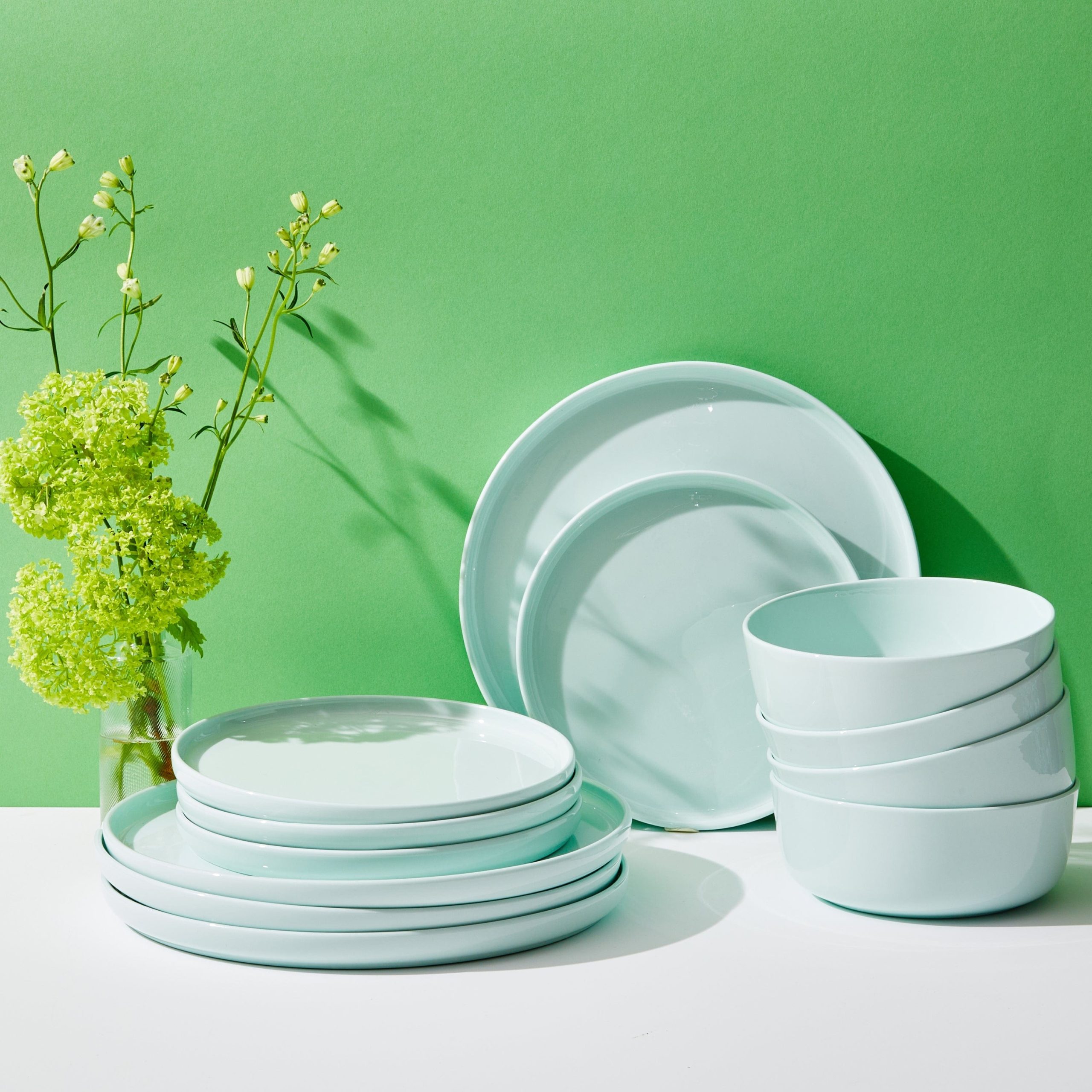Warm and inviting. this Madison 12-Piece Mint Dinnerware Set is beautifully crafted. Featuring contemporary shapes and high-rimmed plates in a tranquil mint green color. The simple elegance of this collection makes it perfect for both everyday dining and casual entertaining.