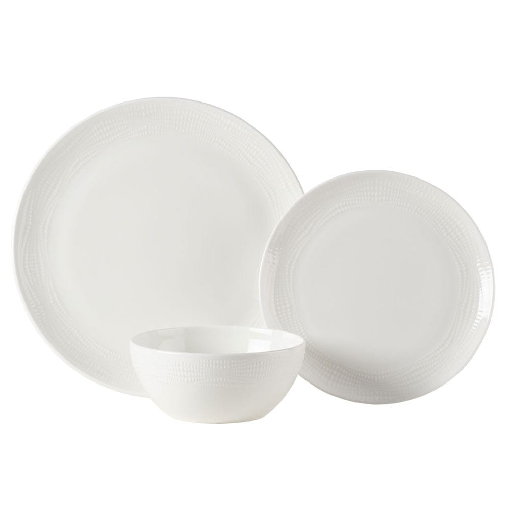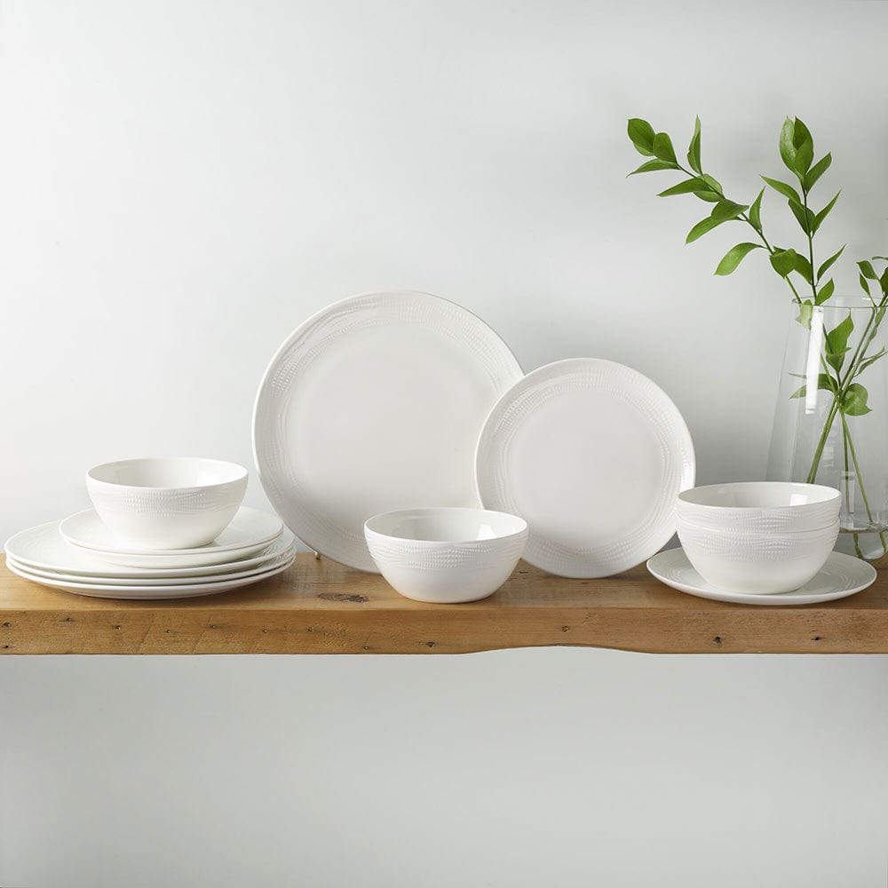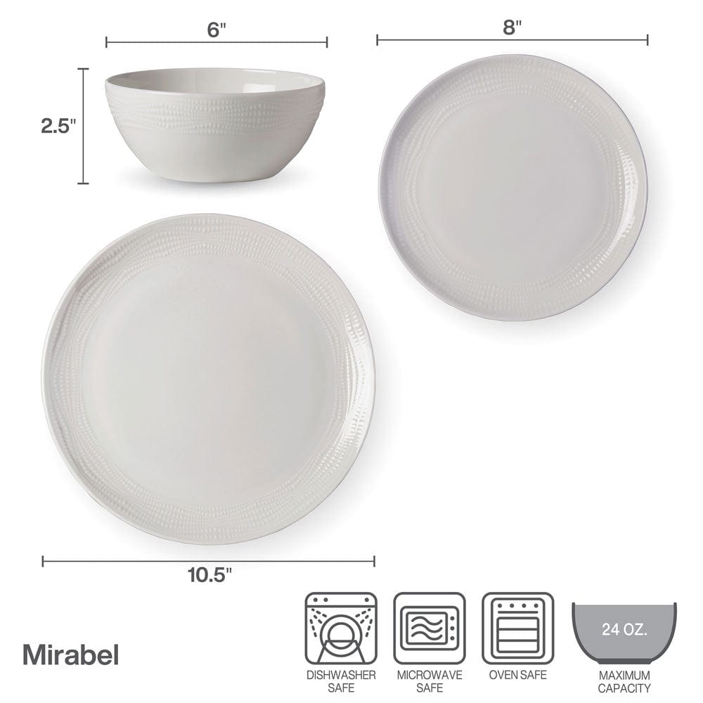 - Service for 4: This 12 piece dinnerware set includes (4) each of: 10-1/2 inch dinner plate. 8 inch salad plate. and 6 inch diameter (24 ounce) all-purpose bowl