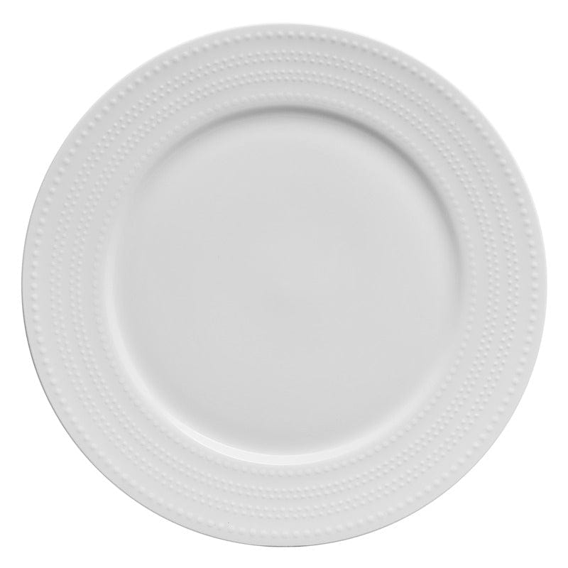 This Nellie Set of 4 Dinner Plates features exquisite embossed detail in a delicate embossed dot design. creating eye-catching depth and movement on your tabletop.