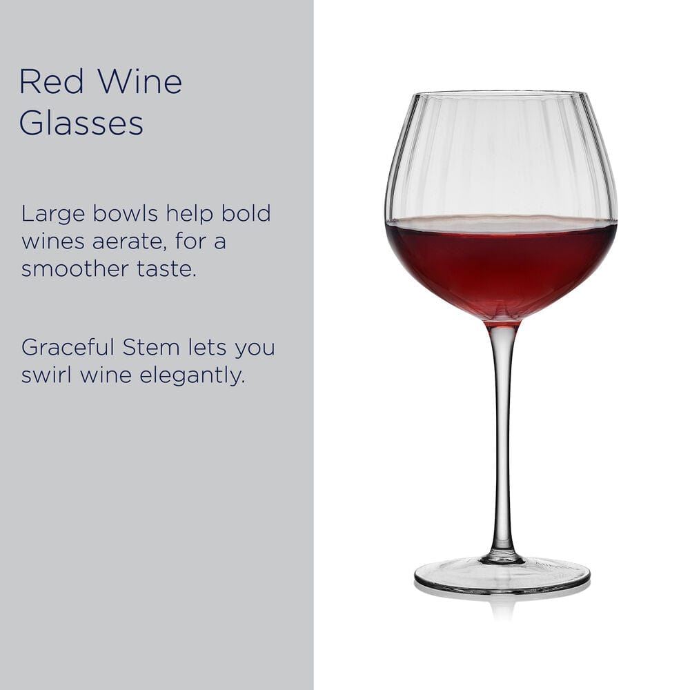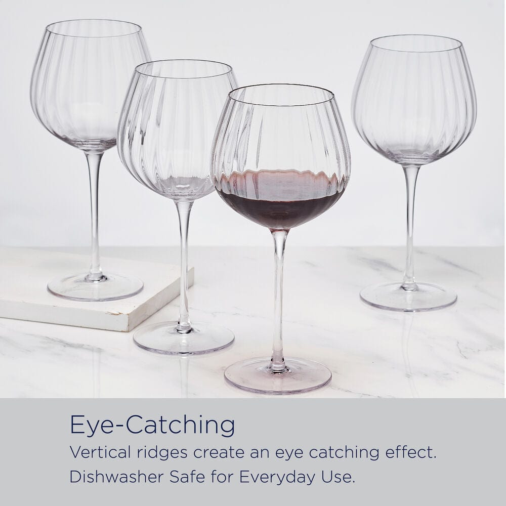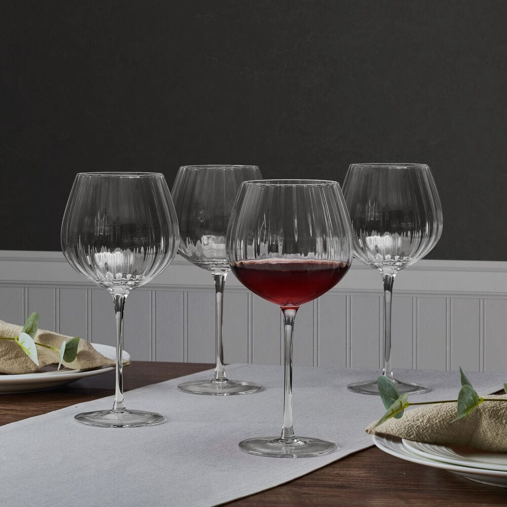 Perfect for everyday enjoyment of red wine or for serving at formal gatherings. this Set of 4 Optic Red Wine Glasses catches the eye with a textured vertical line design that adds visual interest and enhances the tactile feeling of the drinkware.
