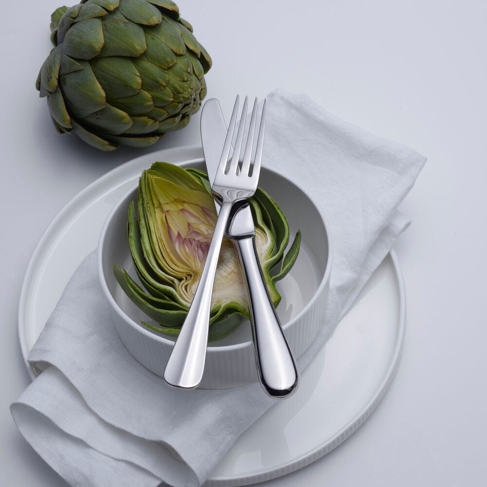 Adorn your casual or formal dining table with a sophisticated and intriguing visual element with this Wallace Riggs 20-Piece Flatware Set. Stunningly crafted for long-lasting beauty. this modern and sleek set updates classic teardrop-shaped handles with bolder curves and a distinct raised. vertical line accent down the middle. Adding to the allure. the dinner knife stands out with a smooth surface and a thicker handle.
