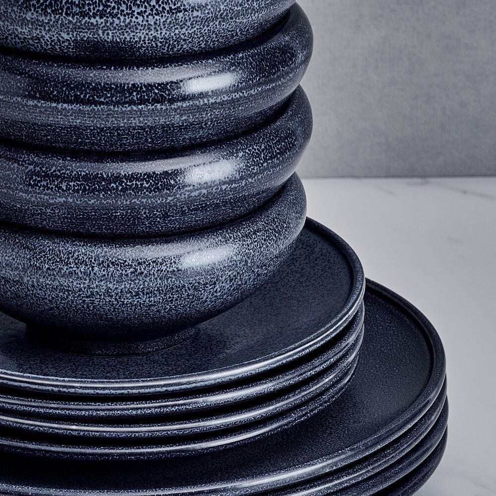 Set a stunning casual and contemporary table with this Rylan 12-Piece Dinnerware Set. Beautifully crafted from high-quality stoneware for long-lasting beauty and durability. this sophisticated set features modern shapes in a vibrant blue shade with a distinct speckle effect and a reactive glaze finish that ensures no two pieces will be identical.?
