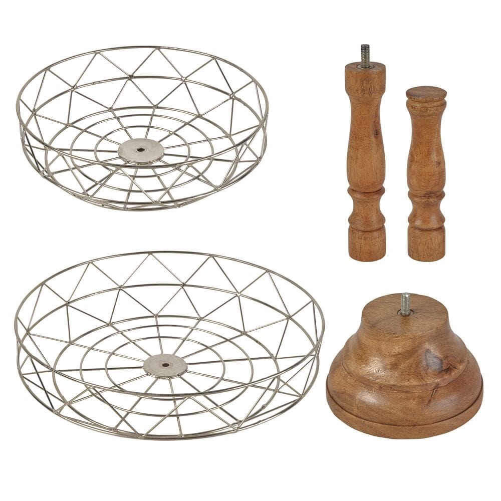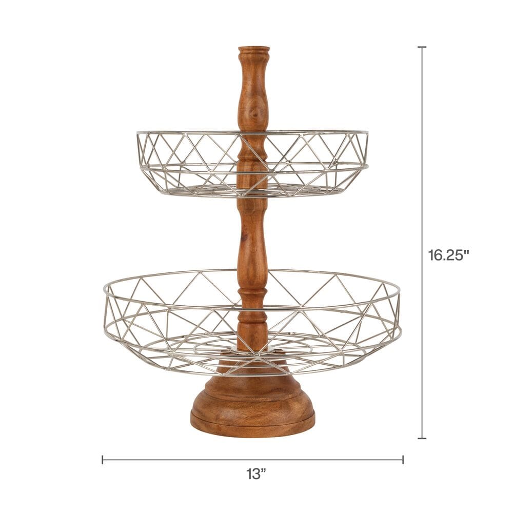 This Gourmet Basics Sidney 2-Tier Basket features an eye-catching wire frame structure. The space-saving 2-tier design allows you to store more items in limited spaces. Use the baskets to display fruit or as a catch-all to keep small essentials within reach. Strong and durable. the basket is handcrafted for long-lasting beauty.?