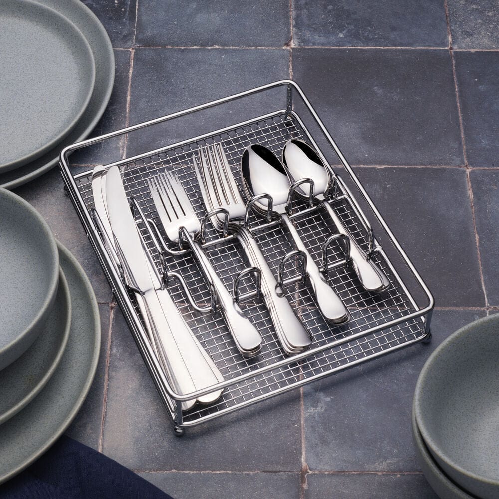 Be the first to review “Symmetry 20 Piece Flatware Set with Caddy. Service for 4”