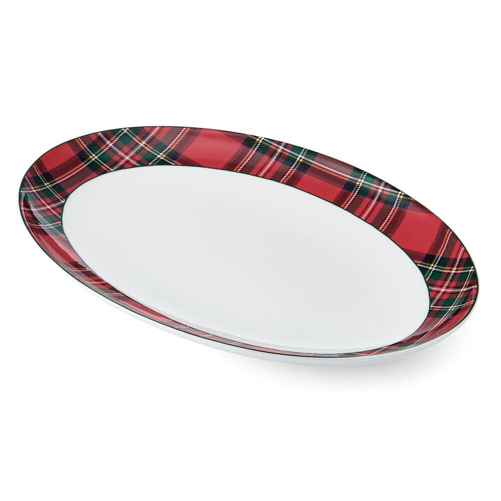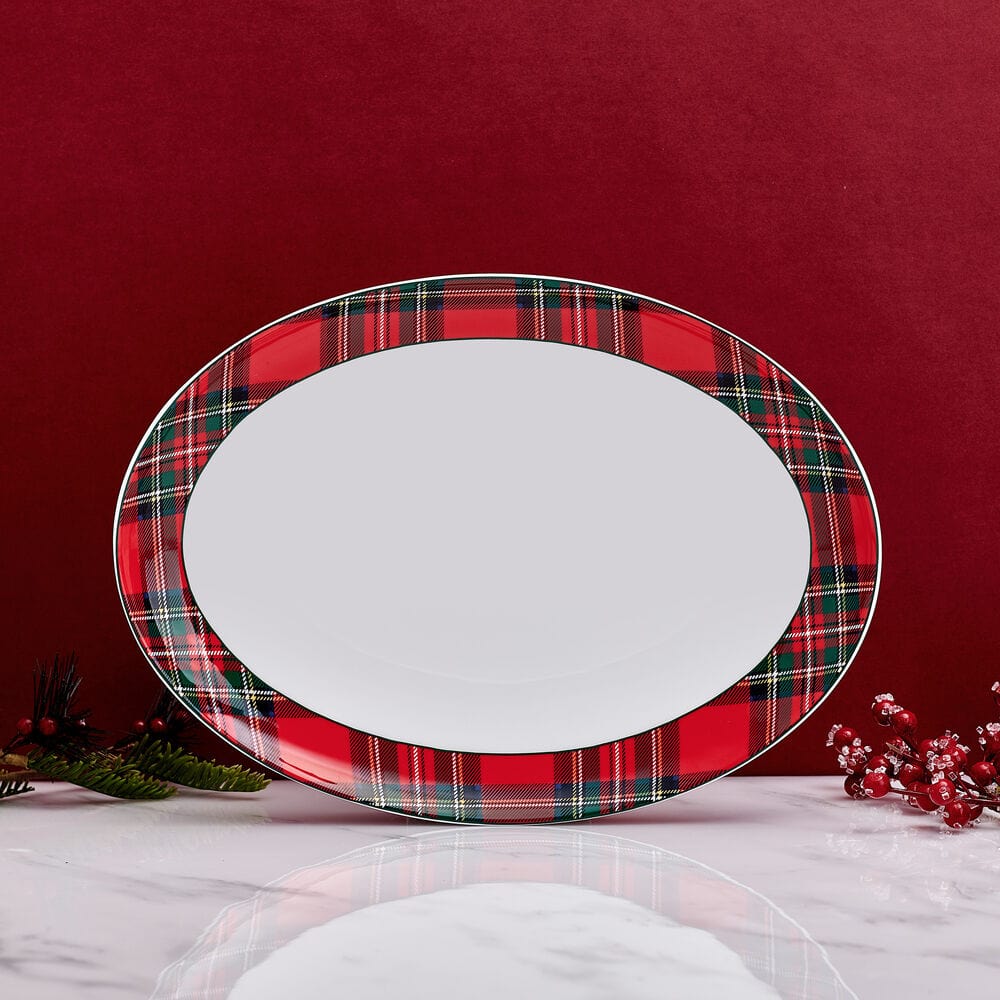 Tartan red brings new life to your holiday table setting. This vivid white platter features a red and green plaid pattern creates a beautiful design making a statement on your tabletop.